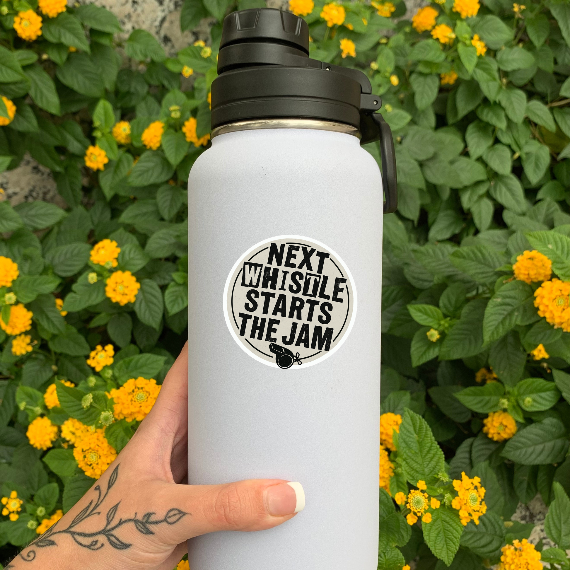 Bring some derby attitude to your gear with this bold “Next Whistle Starts the Jam” sticker — the perfect reminder that it’s always go time. Designed in a vintage punk style with distressed lettering and a grunge whistle graphic, this sticker looks killer on helmets, skate cases, water bottles, or notebooks.